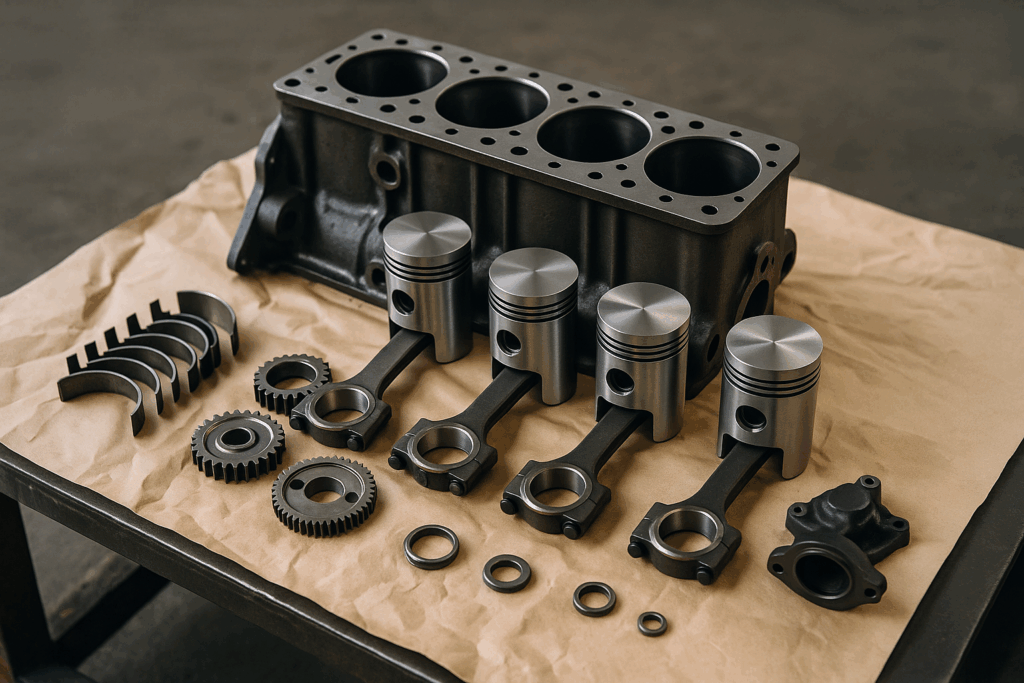 le moteur (segments, joints, pompe à injection, soupapes)